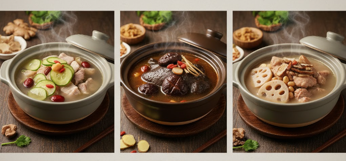 • 精選食材:粵菜煲湯選材廣博,講究新鮮 。從肉類(如雞、鴨、排骨、豬蹄等)到蔬菜(如菜心、冬瓜、蓮藕等),再到藥材(如枸杞、黨參、紅棗等),皆可入湯 。